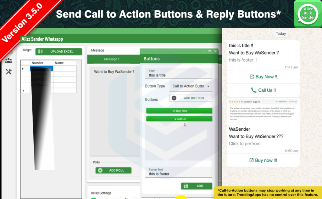 رسائل واتساب غير محدودة إلى جهات الاتصال / الأرقام / إرسال رسائل إلى جميع جهات الاتصال بما في ذلك جهات الاتصال غير المحفوظة في دفتر العناوين الخاص بك.