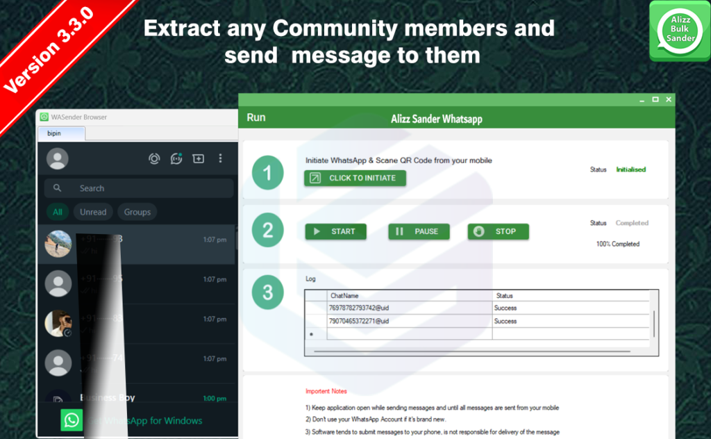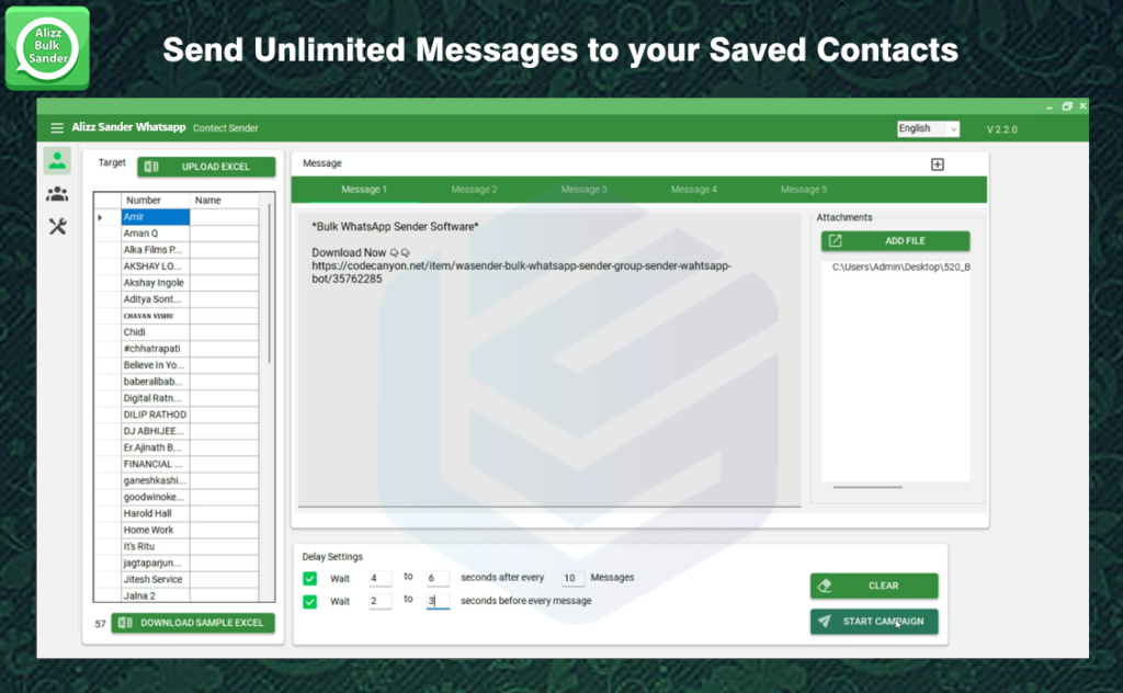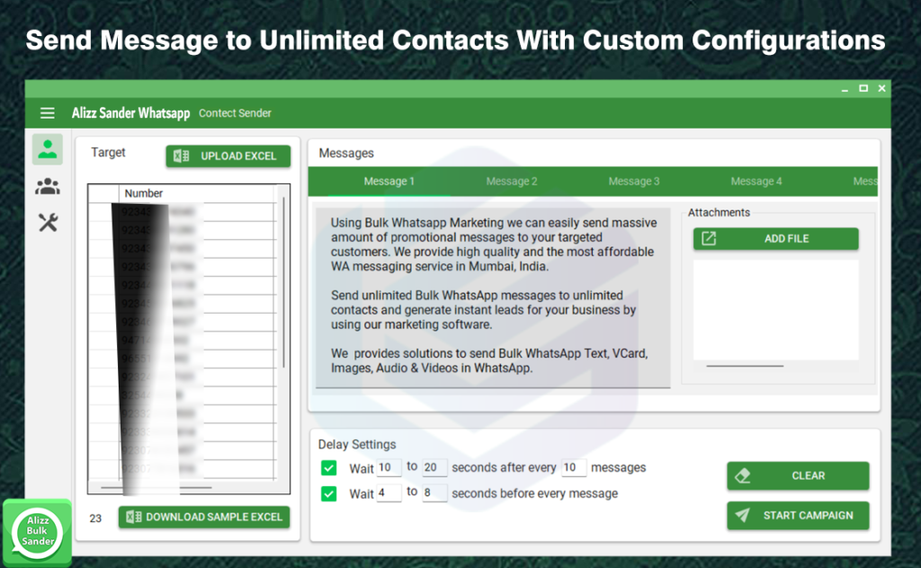 Unlimited WhatsApp Messages to Contact / Numbers / Send messages to all contacts including contacts not saved in your address book.