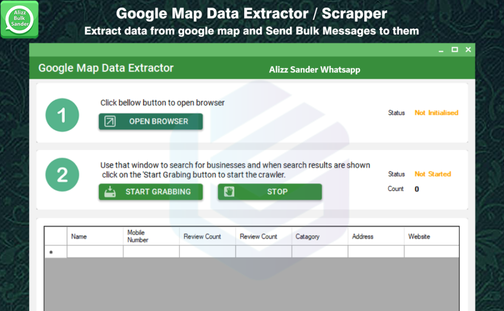 Google Map Data Extractor / Scrapper Extract data from google map with targeted location and import extracted numbers in AlizzSanderWhatsapp, Send Bulk Messages to them