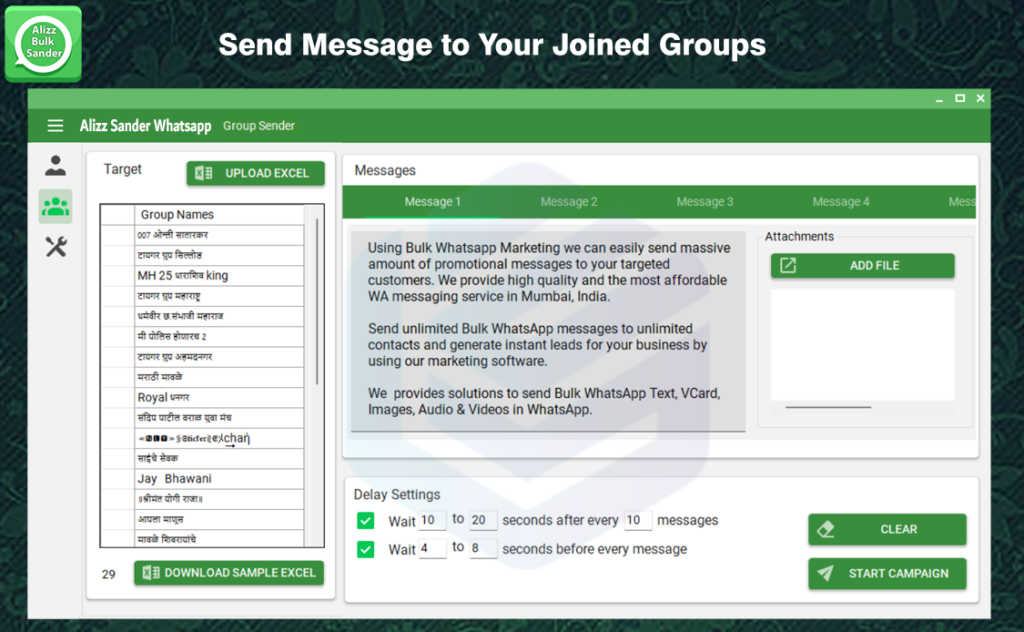 Send Message to Groups / Send unlimited messages to all your joined groups.